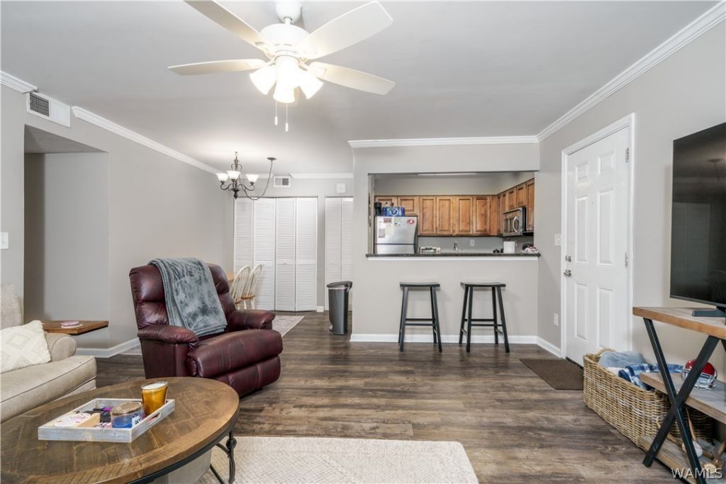 Ground-floor condo at University Downs offering a convenient, move-in-ready option close to University of Alabama. This unit features stainless steel appliances, granite countertops, walk-in closets, and a covered porch perfect for relaxing. With easy access to the Crimson Ride shuttle, its an excellent choice for students or anyone wanting quick access to campus. Residents of University Downs enjoy outstanding amenities including two swimming pools, a fitness center, study and game rooms, fire pits, two dog parks, and a 24/7 computer lab with free printing. The community also offers gated access, nightly courtesy officers, fire protection, and a 24/7 camera system for added peace of mind. The $438/month HOA fee includes cable, water, and internet, making for easy, low-maintenance living.