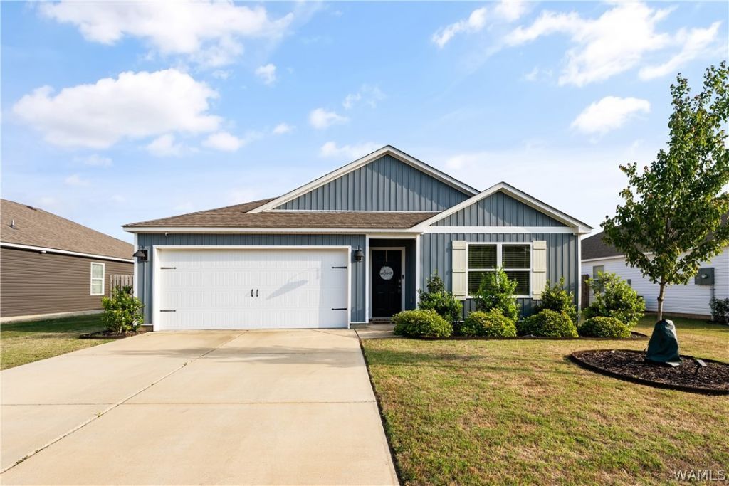 Easy, one-level living with a layout that actually works. This 4-bedroom, 2-bath home offers an open living, kitchen, and dining flow, while the primary suite is set apart from the additional bedrooms for added privacy. The primary includes double vanities, a walk-in shower, and a spacious closet. Outside, enjoy a simple, low-maintenance setup with an open back patio and two-car garage. Location is the advantage here?just minutes to Hwy 82, the interstate, Tuscaloosa Airport, PARA, Lowes, Walmart, medical, and everyday dining. A clean, functional option for buyers who value layout and convenience.